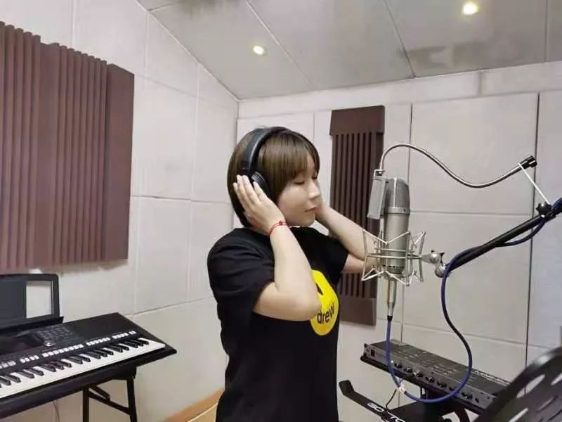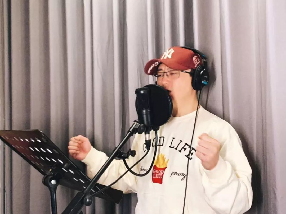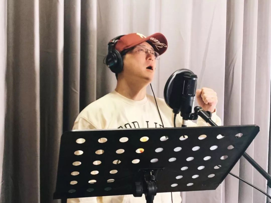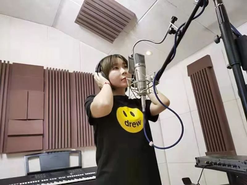 歌手陈曦和鹏鸣在录音棚录音《战疫,我们来了》